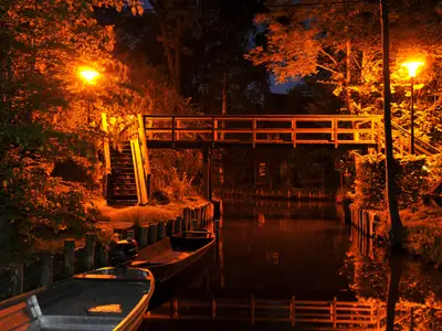 Genießen Sie zauberhafte Momente an verschiedenen Orten im Hafenareal, in dem zwei Dutzend Lichtnacht- Geister für Kurzweil und gute Laune sorgen. Egal ob Bistro, Restaurant oder Imbiss- für das leibliche Wohl ist gesorgt bei Musik und Schauspiel, bevor als krönender Abschluss die Lichtnachtkahnfahrt „Zauber der Landschaft“ im Fließlabyrinth stattfindet. Lassen Sie sich vom Farbspiel einfangen und verzaubern, bei dem jedes Haus anders illuminiert wird.